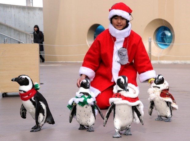 Já se sabe que não há aquário que passe sem o seu Pai Natal - este é no Sunshrie de Tóquio, Japão Toru Yamanaka/AFP