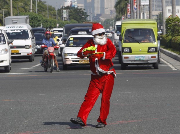 Com um polícia sinaleiro assim, o trânsito é mesmo mais natalício. Visto em Manila, Filipinas, onde as celebrações de Natal chegam a começar em... Setembro Romeo Ranoco/Reuters
