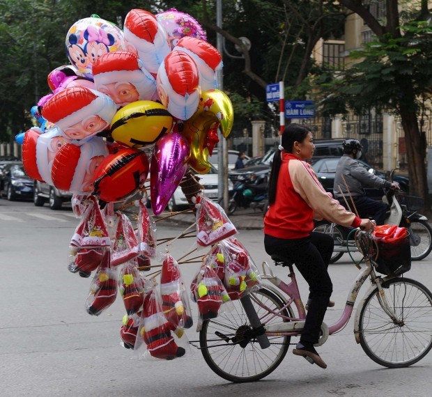 Em Hanói, no Vietname, o Natal também não passa em branco. Menos de 7% da população é cristã mas não faltam decorações e comemorações Hoang Dinh Nam/AFP