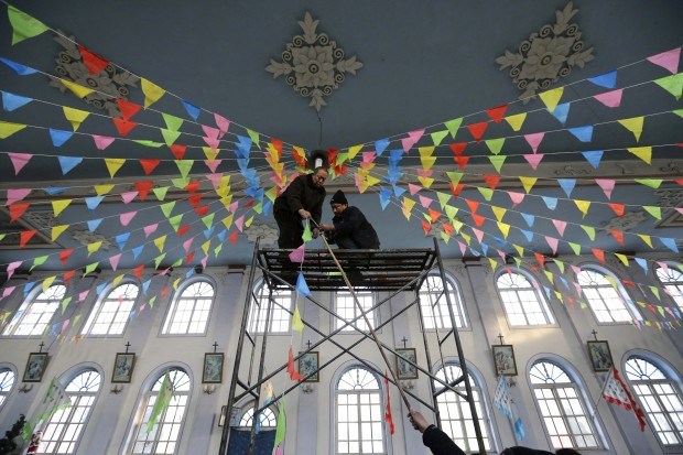 Uma igreja católica na China a ser decorada para o Natal (em Gaojiabao) Jason Lee/Reuters