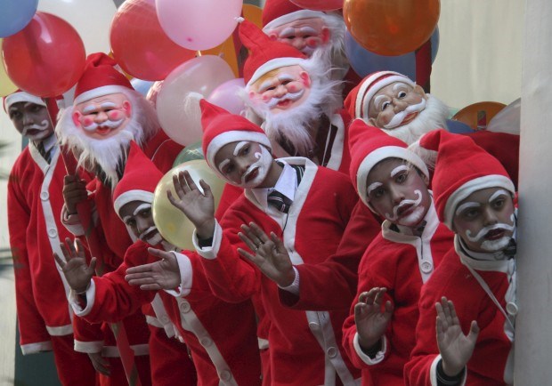 Estudantes preparados para as celebrações de Natal na sua escola na cidade de Chandigarh, Índia Ajay Verma/Reuters
