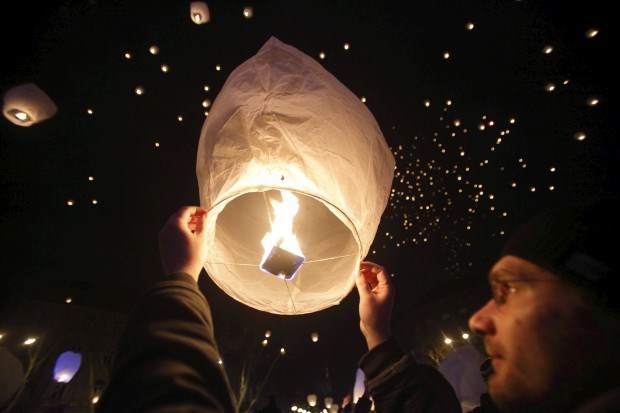 Para o final, grandes esperanças: o participante de um evento organizado pelo artista Kresimir Tadija Kapulica, em Zagreb, Croácia, lança uma das mil "lanternas chinesas" que simbolizam o envio de desejos e boa vontade para o universo Antonio Bronic/Reuters