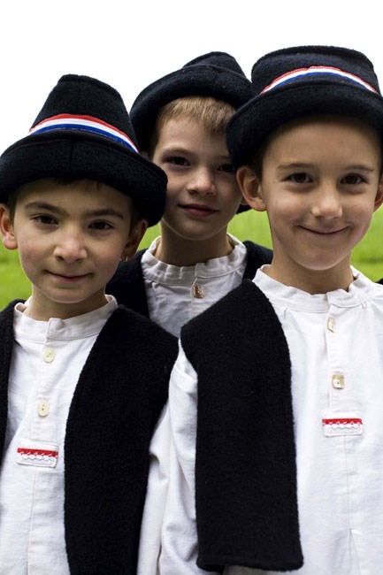 Meninos croatas depois de uma actuação de dança na escola de uma aldeia