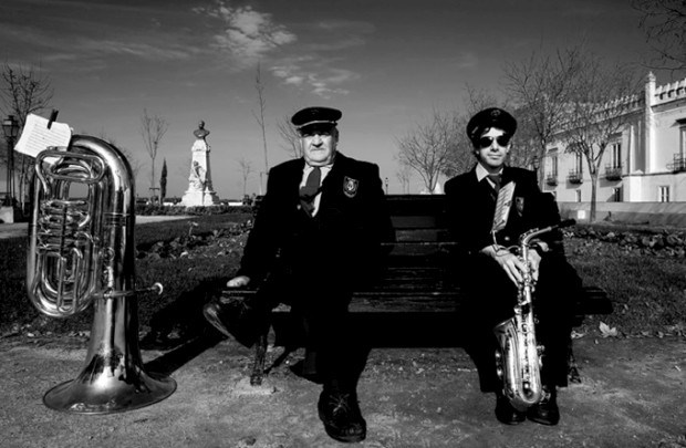 Em Évora, pausa da banda filarmónica durante um desfile pela cidade numa tarde quente de Agosto