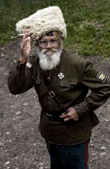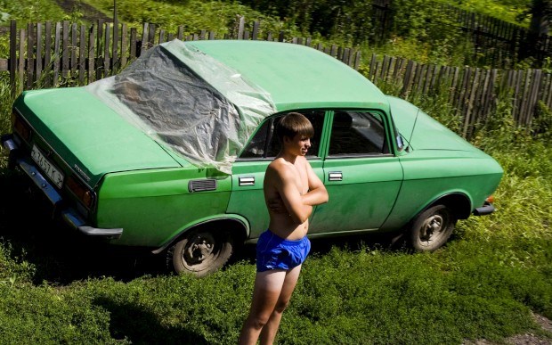 Habitante de uma aldeia no lago Baikal, na Sibéria, saúda a passagem do comboio Transiberiano