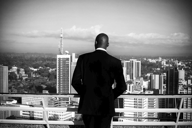 Uma cidade debaixo de olho: A partir do topo de um edíficio governamental, um segurança observa a cidade de Nairobi, Quénia