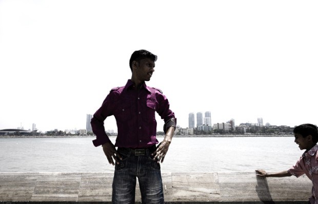 Em pose, com a poderosa Mumbai (Bombaim) ao fundo, Índia
