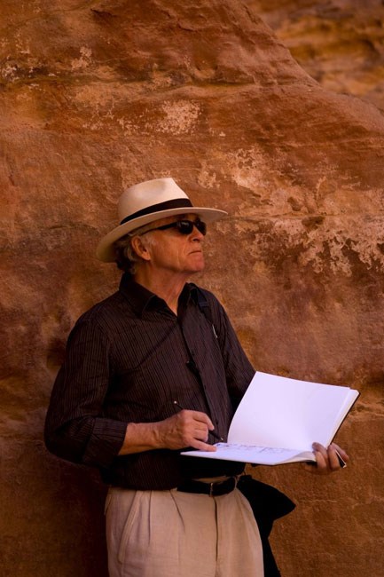 Um turista a desenhar os tesouros de Petra na Jordânia