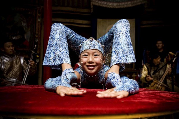 Haja elasticidade: Contorcionista mongol, durante uma actuação na capital Ulan Bator