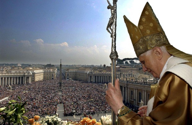 O Papa Bento XVI e uma praça tornada mar de gente. Urbi et Orbi na Páscoa de 2007. Reuters/Osservatore Romano