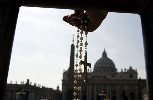 A mão de um crente segura o rosário na praça de São Pedro Peter Dejong/AFP