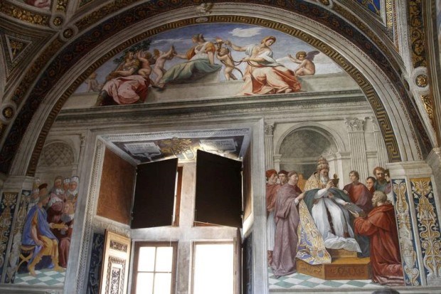 Um fresco terminado por Rafael em 1551, o "O Cardeal e as Virtudes Teológicas" nos museus do Vaticano Reuters