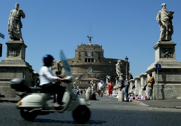 De "motorino", ícone italiano, em frente ao Castelo de Sant' Angelo Tony Gentile/Reuters