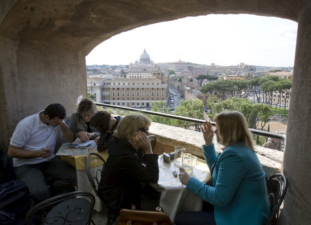 Turistas na esplanada-varanda do Castelo de Sant' Angelo Chris Helgren/Reuters