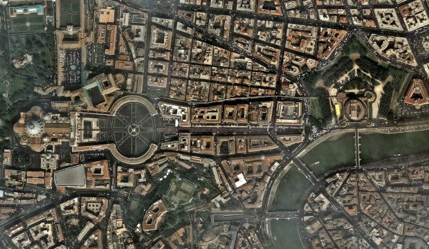 Uma imagem de satélite do Vaticano, captada durante as cerimónias fúnebres de João Paulo II AFP/Digital Globe