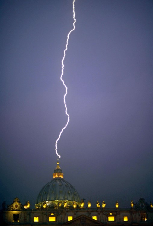 O raio: No mesmo dia da resignação de Bento XVI, um raio captado na Basílica horas depois Filippo Monteforte/AFP