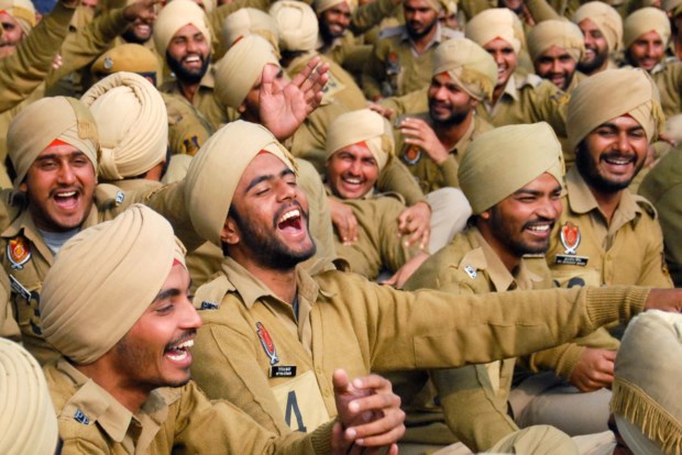 Polícias praticam yoga do riso em Punjab, na Índia SHAMMI MEHRA/AFP