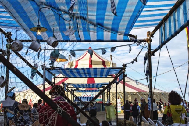 Interior da tenda do festival Paulo Barata