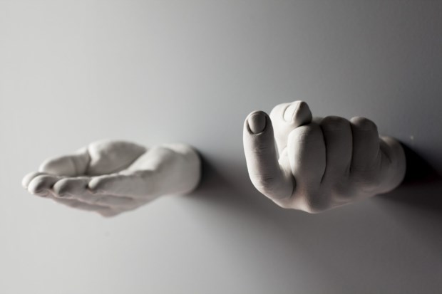 As mãos que moldam os cornos, que são o Entrudo de Lazarim