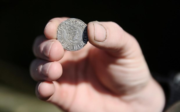 Uma moeda com o rosto de Henrique VII (Rei da Inglaterra de 1485 até sua morte), retirada das margens do Tamisa