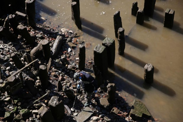 Se o detector der sinal, é preciso começar a escavar na lama das margens do rio