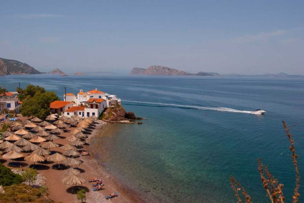 11. Vlychos (ilha de Hidra, Grécia): Fica a 3h de Atenas (carro e ferry) e meia-hora a pé do porto da ilha. Vlychos é das poucas praias de areia da ilha (a areia foi "importada" para aqui). Um "pedaço de paraíso". DR/Turismo de Hydra