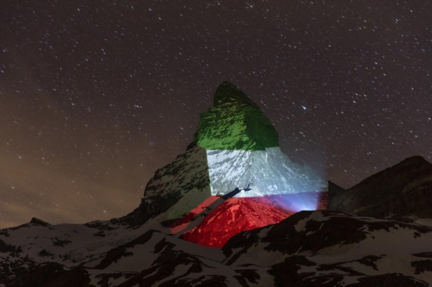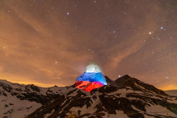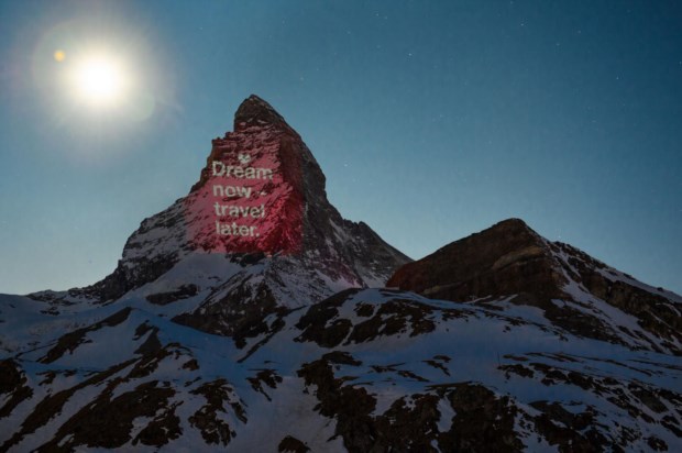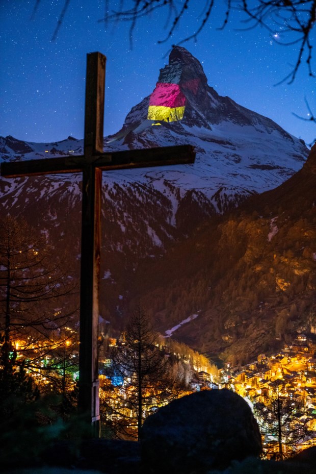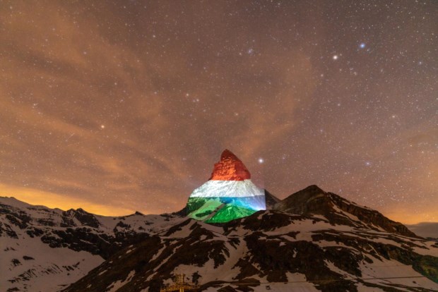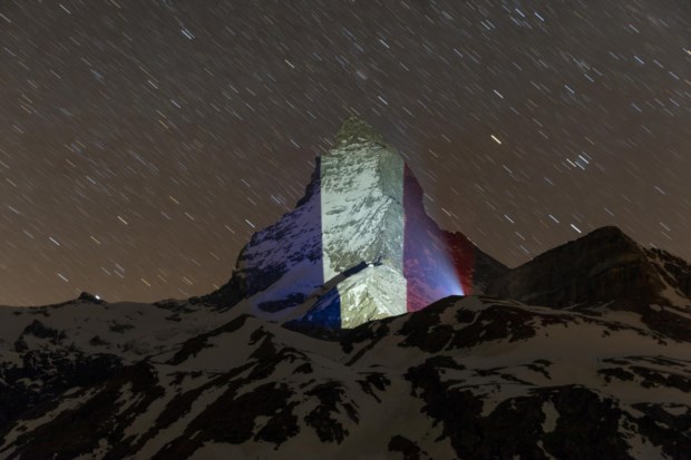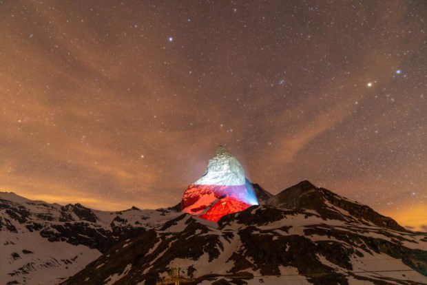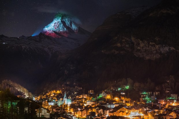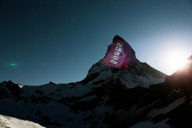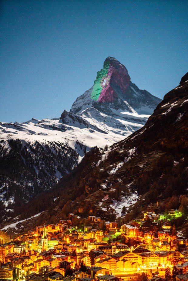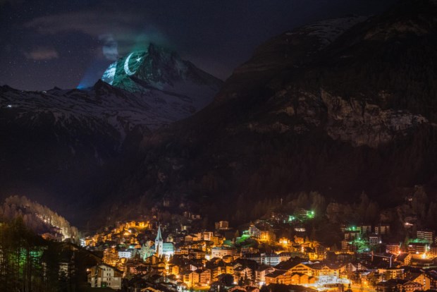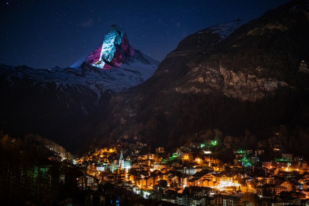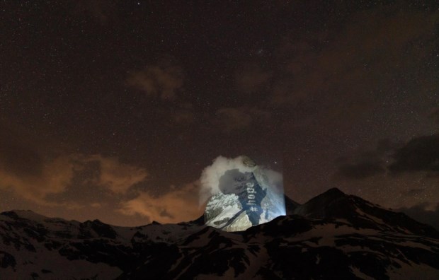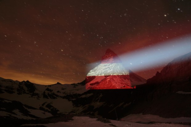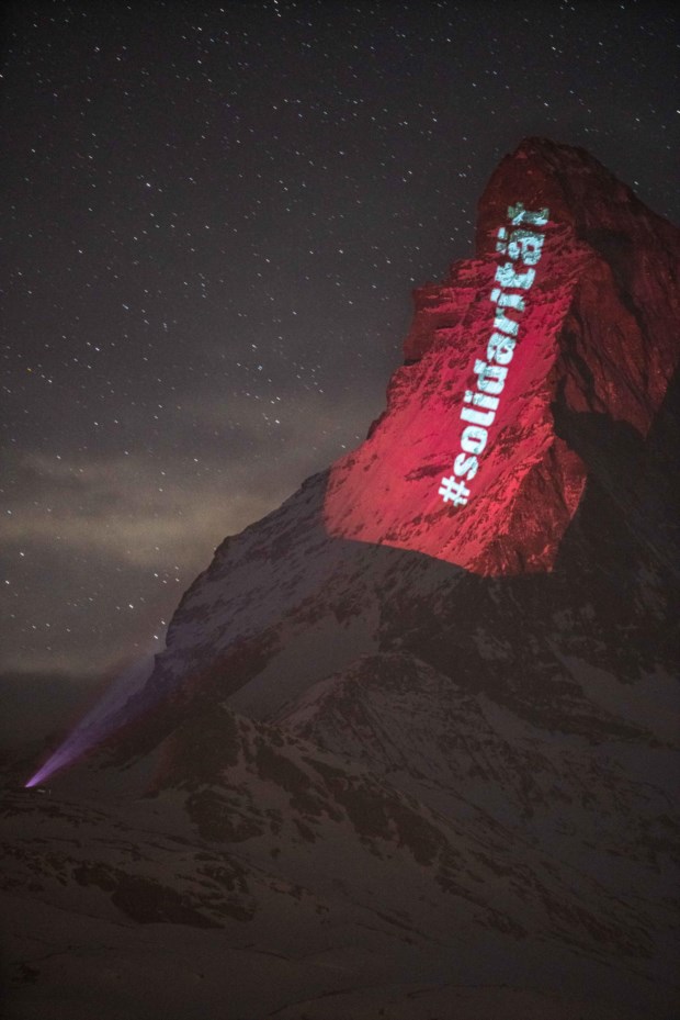 É o projecto Hope, apoiado pela região de Zermatt e assinado pelo artista da luz Gerry Hofstetter. Todas as noites, o Monte Matterhorn é a tela de um país, de um sentimento, de uma palavra de ordem. Até 26 de Abril, pelo menos.