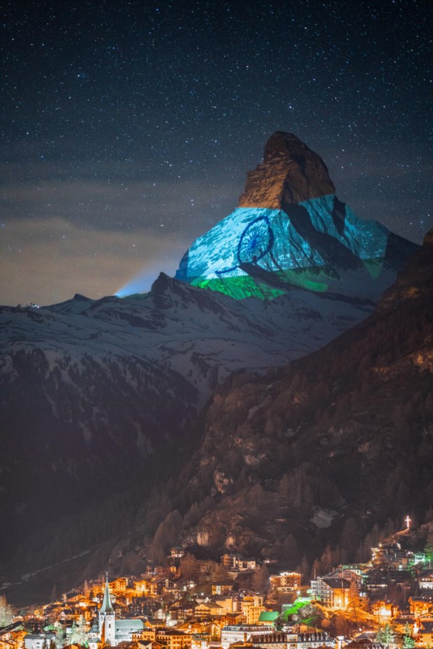 Zermatt Tourismus. Light Art by Gerry Hofstetter, foto de Gabriel Perrens Solidariedade