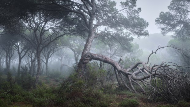 Fotografia panorâmica de uma zona densa de pinheiro manso na Mata Nacional dos Medos em Almada. 2º lugar em Flora e Fungos Tiago Mateus