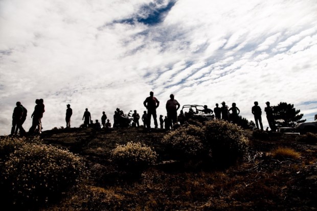 Como no preciso momento em que chegamos ao local onde estariam a ser cercados. Ao mesmo tempo que saltamos uma vedação de arame farpado para nos pormos a salvo (e nele deixamos um bocadinho do tecido das calças), várias pessoas saltam para carrinhas de caixa aberta ou para dentro dos jipes. Nós também acabaríamos dentro de um, cujo proprietário nos levaria numa corrida atrás dos animais. Ouvem-se roncos de motos e gritos que nos orientam na direcção dos bichos — “Estão a ir para baixo! Estão a ir para casa.”