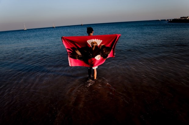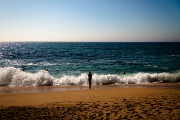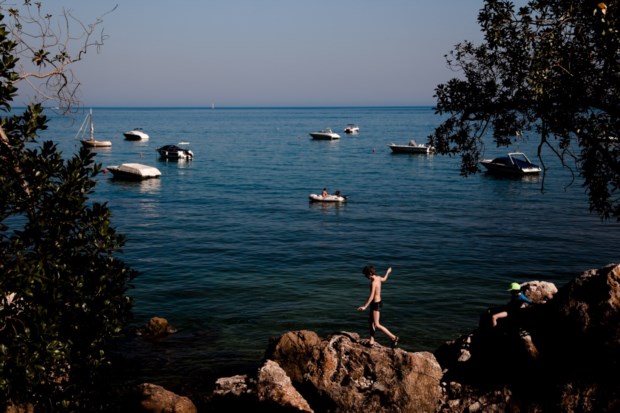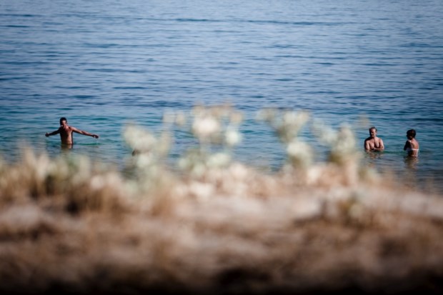 Há uma pequena baía aqui ao lado, onde uns poucos fazem praia. Mas o habitual é descer a costa, até Sines, diz Maria de Lurdes. Ela, de rosto tisnado, não gosta de praia: "A minha vida é sempre dentro de água." Em Sesimbra, as praias e a pesca andam lado a lado, mas não dão as mãos. Encontram-se nas mesas dos restaurantes que povoam as ruelas íngremes da vila e a avenida que se estende junto ao mar, dividida pela Fortaleza de Santiago - à porta, arcas mostram o peixe à espera de ser cozinhado, nas brasas, sobretudo. O castelo está escondido quando visto cá de baixo, das praias da Califórnia e do Ouro, que partilham a mesma faixa de areia e estão a abarrotar. Parece-nos impossível circular entre toalhas e guarda-sóis com vista para os insufláveis no mar. O movimento só abranda na altura do jantar, para depois as ruas começarem novamente a encher-se, no típico ritmo balnear.