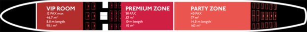 Existem três pacotes disponíveis, consoante o lugar ocupado no avião, com preços diferenciados: Party Zone, Zona Premium e Zona VIP. A primeira área “irá acomodar até 40 passageiros e está acessível a partir de 2600 euros”; enquanto a proposta premium “é mais exclusiva e limitada a 24 passageiros”, oferecendo mais espaço por cada pessoa, uma noite em hotel de quatro estrelas, jantar com os outros passageiros na noite anterior, o fato espacial do voo como recordação no final e “um relógio suíço exclusivo que irá servir de cartão de embarque”. Aqui o preço quase triplica e um bilhete passa a custar “a partir de 6700 euros”.