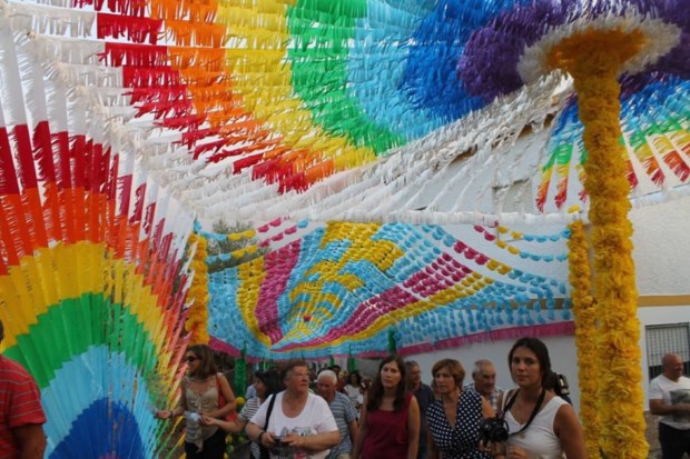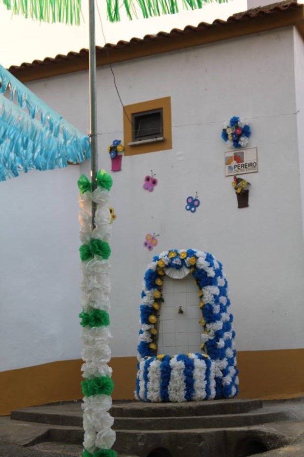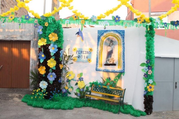 Há "jardins suspensos" em todas as 20 ruas e largos do Pereiro numa tradição que remonta à época em que vivia da recolha da resina e dos pinheiros e que "envolve toda a população na preparação das flores que os moradores e familiares se dedicam a fazer ao longo do ano", disse à Lusa o vice-presidente da Associação Cultural, Desportiva e Recreativa do Pereiro (ACDRP), António Maia.