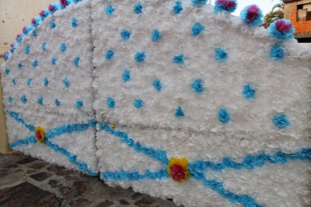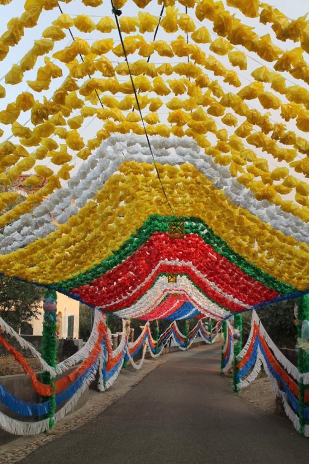 Inicialmente feitas com flores em papel nas janelas e portas das casas no dia da procissão, as decorações passaram recentemente a ser feitas em plástico reciclável, para evitar que, "se chover, o trabalho de um ano não vá todo por água abaixo num único dia", justificou o mesmo responsável.