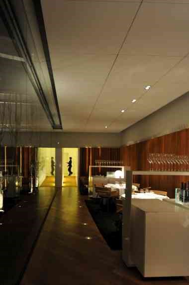 A cozinha ocupa todo o piso térreo da moradia, tendo a sala de restauração e a extraordinária cave de vinhos (já lá iremos) sido implantadas no espaço exterior, que facilmente se imagina ter sido antes ocupado por jardins. Arquitectura sóbria, discreta e muito elegante, com acolhedora sala de espera/bar onde há vasta literatura ligada ao mundo da comida e dos vinhos, ampla vitrina com centenas de whiskies e competente secção de charutos.