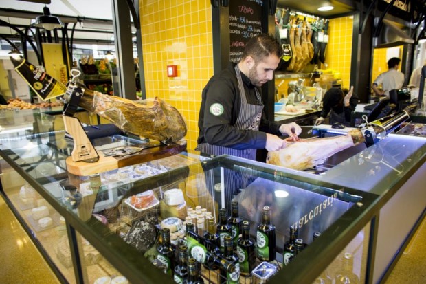 A primeira pessoa que encontramos quando entramos na nova zona de pequenas tascas do Mercado de Campo de Ourique, em Lisboa, é David Igrejas, um dos criadores do Prego Gourmet, que já existe em vários espaços da cidade, e que aqui estreia um novo conceito importado dos Estados Unidos: comida de bar americano.