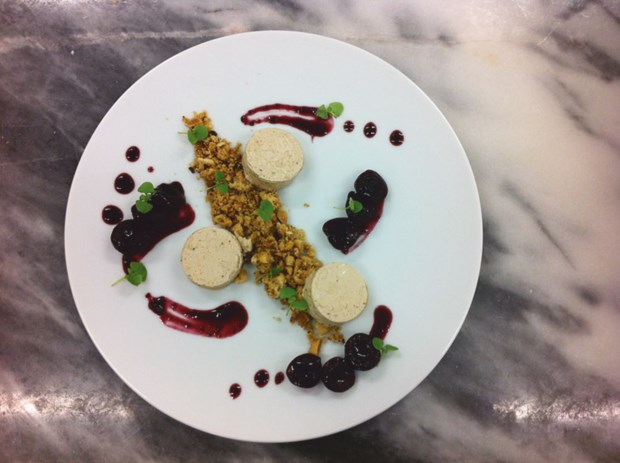 “Não queríamos uma compota”, sublinha. “A nossa maior preocupação foi que, no final, se identificasse claramente como cereja. Para isso era preciso manter a cor e o sabor de fruta fresca.” Fizeram muitos ensaios e provas até chegarem ao resultado que pretendiam: um doce de cereja, leve, não demasiado doce, “onde se sentisse ainda o picozinho de acidez da fruta”, e no qual se distinguissem pedacinhos do fruto. Depois foi preciso, sem perder essas características, chegar à consistência ideal para rechear a bola sem riscos de que o recheio escorresse para o exterior.