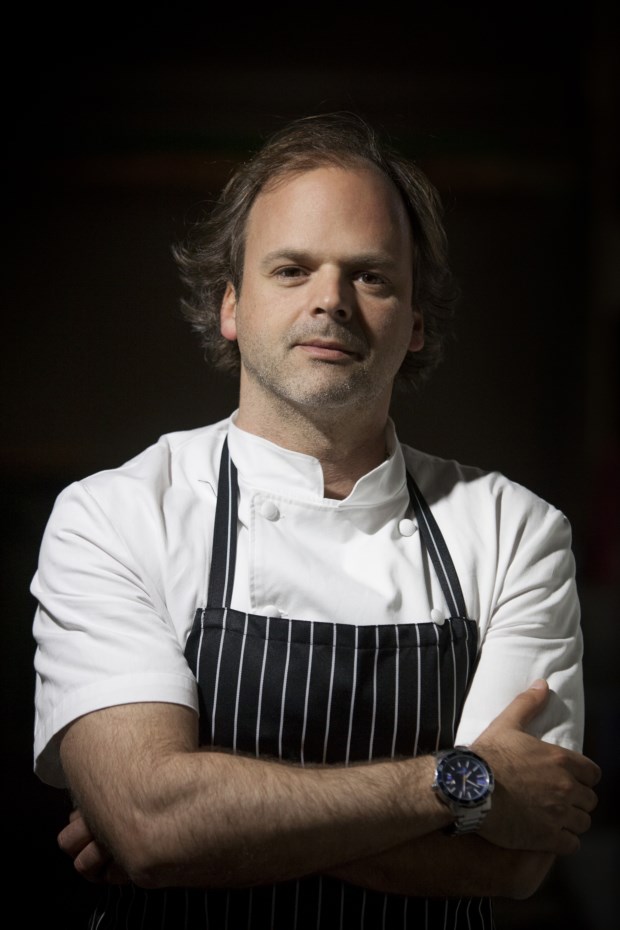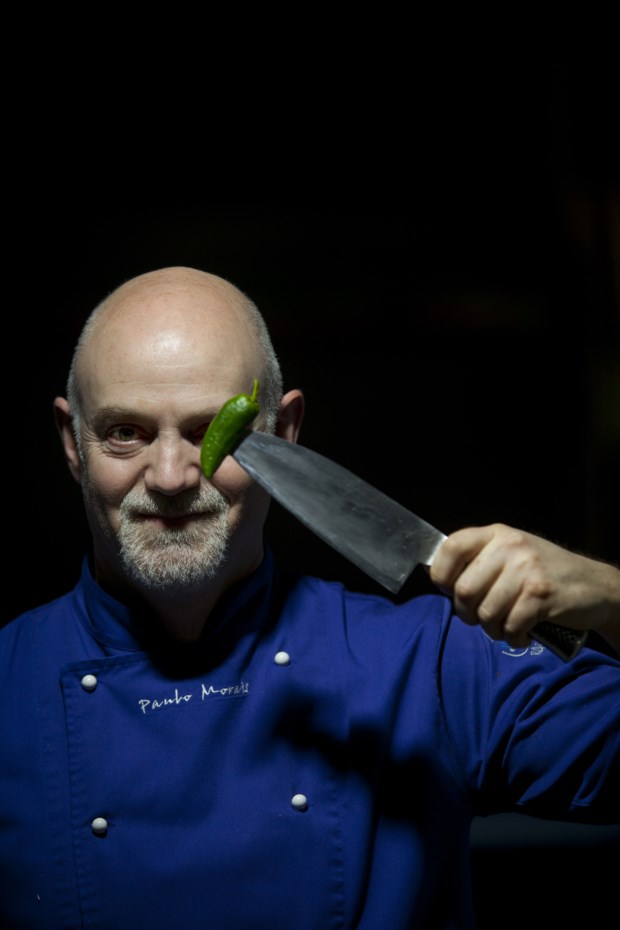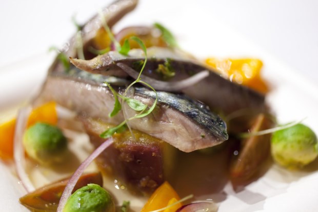 Prova de que a cavala já se impôs (ver a conversa anterior com Bertílio Gomes) até na alta cozinha é o facto de o chef do Ritz, Pascal Meynard, a ter também na sua oferta e de a escolher como produto que lhe agrada particularmente trabalhar. Francês, confessa que no seu país nunca tinha trabalhado com cavala, um peixe que começou a descobrir desde que está em Portugal. Refere também a textura firme e o sabor, mais intenso do que outros peixes do mesmo género, como factores que dão à cavala uma personalidade interessante. Para equilibrar esses sabores fortes do peixe, apresenta-o levemente fumado e usa aqui vários elementos que contribuem para o prato de formas diferentes, nomeadamente com a acidez, como os pickles ou o gel de limão, a que se junta a pimenta d’Espelette (famoso produto francês) e um bolo-esponja feito de camarinha.