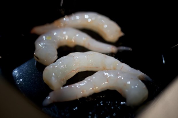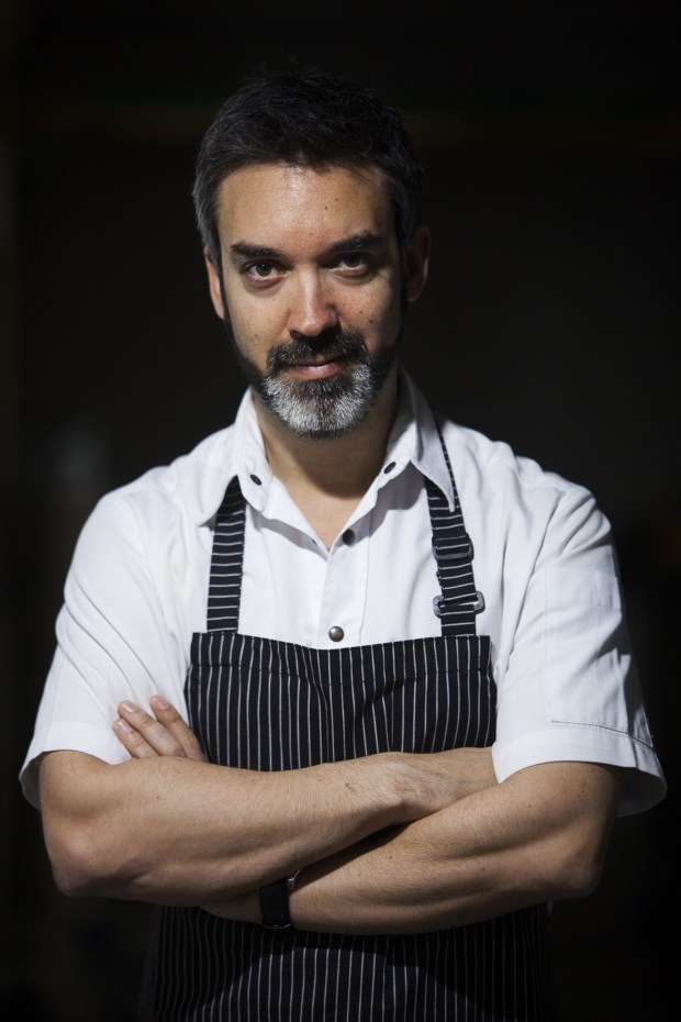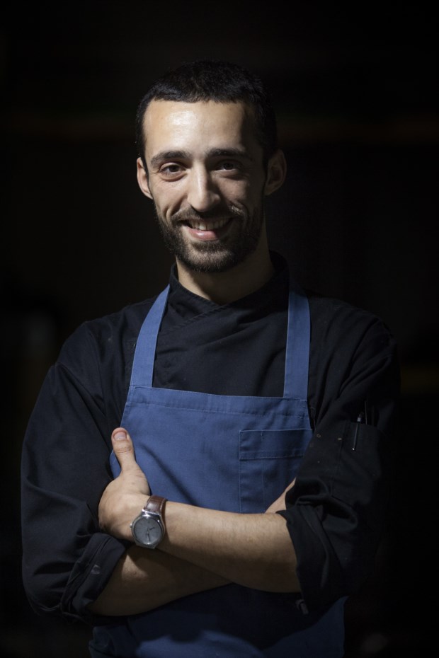 É a primeira vez que Sá Pessoa está presente no Peixe em Lisboa com o Alma (uma estrela Michelin) e quis trazer alguns pratos do menu Costa a Costa, no qual trabalha o melhor que o mar português oferece, além de outros do seu mais recente espaço, o Tapisco. O produto que elege são as gambas do Algarve que apresenta num prato, a gamba ao alhinho, em que brinca com a tradicional gamba “à guilho”. Agrada-lhe este marisco sobretudo pela textura (serve-o praticamente cru) e o sabor delicado, com uma leve doçura. Por cima coloca-lhe uma espuma de alho com duas ou três gotas de picante.