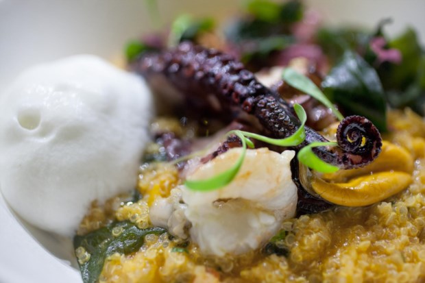 Com Kiko Martins ausente em trabalho para um programa televisivo, é o chef António Barros quem nos recebe no espaço do Chef Kiko. E como produto de eleição escolhe o polvo, que é aqui apresentado num quinoto, um prato servido na Cevicheria, um dos restaurantes de Kiko em Lisboa, inspirado pelo risotto mas usando como base um produto tipicamente latino-americano, a quinoa. Esta é cozinhada como o arroz do risotto e finalizada da mesma forma, para ficar aveludada e, neste caso, é acompanhada por polvo (na Cevicheria o prato é feito com peixe). António Barros diz que trabalhar o polvo é “fácil”, o fundamental é não o deixar borrachoso, mas cozinhado no ponto não tem como falhar, garante.