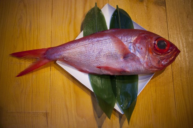 Na bancada à frente do sushiman Paulo Morais estão vários peixes pousados sobre o gelo. Paulo vai pegando neles e preparando-os em sashimi, para o sushi ou para os restantes pratos que trouxe para o festival saídos da carta do restaurante Rabo d’Pêxe, em Lisboa. Quando lhe pedimos para escolher um, opta pelo alfonsino, vermelho, olhos grandes, ar fresquíssimo. Acha que é um peixe pouco valorizado em Portugal (onde existe nas águas dos Açores) porque fica sempre à sombra do seu “primo” mais popular, o imperador. No festival, os clientes têm a mesma opção que no restaurante: escolhem o peixe (o alfonsino ou outro) e este é cozinhado de três maneiras, uma parte é utilizada para fazer sushi e sashimi, a outra para grelhar e a cabeça para fritar.