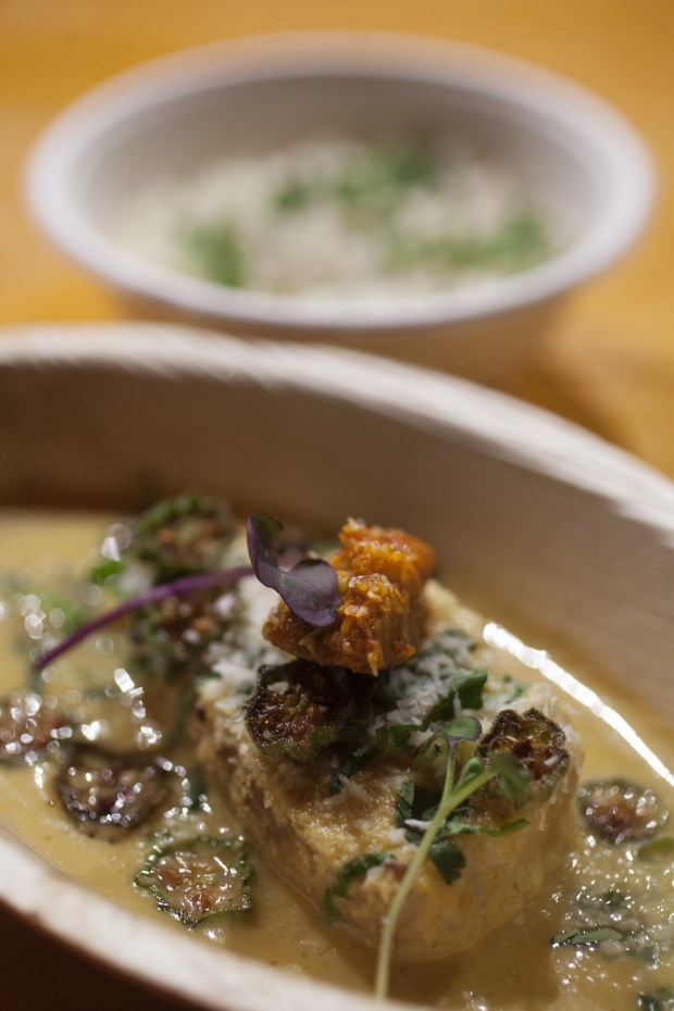 O chef do Ibo, o restaurante situado à beira do rio, em pleno Cais do Sodré, em Lisboa, olha para a carta que tem no Peixe em Lisboa em que se destacam as famosas puntillitas em molho de citrinos e coentros ou as muito procuradas chamuças de peixe com chutney de banana-maçã e acaba por escolher o caril de garoupa com coco e manga seca. Depois explica o que é evidente só de olhar para a carta: a cozinha do Ibo mistura os peixes e o marisco portugueses com os sabores da cozinha de Moçambique, com as suas fortes influências indianas. É, por isso, um restaurante que conta (parte) da história dos portugueses no mundo. A escolha do caril tem a ver com o facto de a garoupa ser um peixe que, pela sua textura firme, aguenta bem esta conjugação de sabores que tem no coco a nota de doçura e no pickle de manga seca (o achar) o pico de intensidade de sabor.
