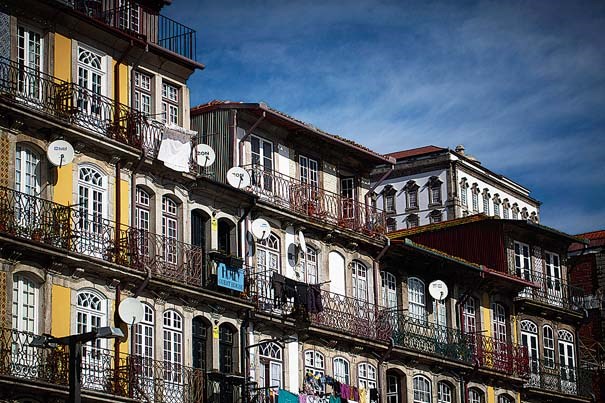 O colorido das casas impressiona, as roupas nos estendais evocam fotografias vistas, as bancas de atoalhados e artesanato merecem miradas, apenas. A violinista que toca A canção do mar não suscita qualquer reconhecimento, apenas memórias de um outro dia na Ribeira com música brasileira. As fotografias vão-se sucedendo, em grupo, do cenário — o Facebook dos cinco será constantemente actualizado, do Porto com amor.