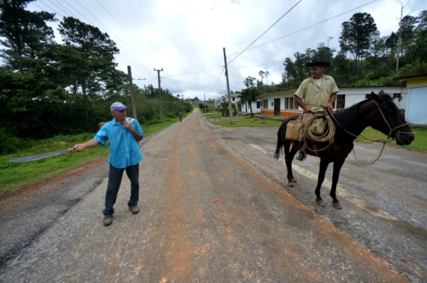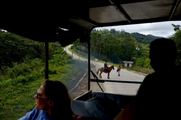 Sentado nos degraus da Igreja Paroquial da Santíssima Trindade, a entrelaçar palha que há-de transformar-se em pequenos animais que vende aos turistas, Fulgencio lança o olhar sobre esta tarde abafada. Sol para um lado, nuvens pousadas na serra do Escambray. É justamente para lá que vamos, para a serra do Escambray. Deixamos, portanto, Trinidad envolta numa luz mágica de fim de tarde e começamos a viagem de cerca de uma hora até Topes de Collantes. Uma hora ou mais, dizem-nos, que entretanto a noite há-de chegar e tornará o trajecto curva-contracurva ainda mais difícil. De Trinidad a Topes de Collantes são 25 quilómetros numa estrada pouco própria para cardíacos.