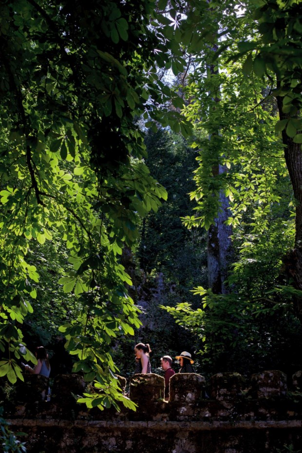 É, continua a guia, um jardim “onde existe exaltação dos sentidos”: o som da água, as cores, os cheiros das flores, as texturas dos troncos das árvores — o toque da cortiça é mais suave do que o do castanheiro ou do carvalho, por exemplo.