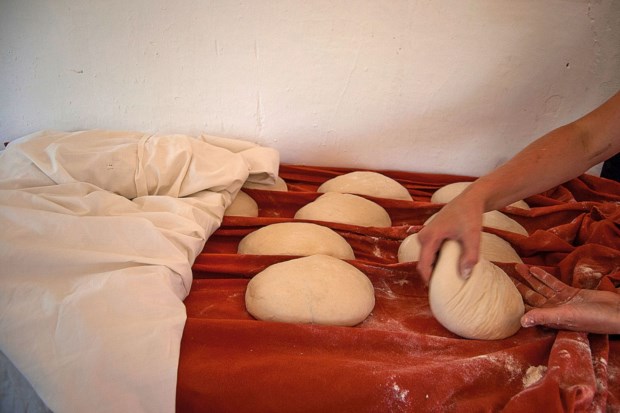 De volta ao forno, ao pão. O pão alentejano, um ex-líbris da região que faz umas bocas salivar e outras refilar pela sua densidade. “Os pães do princípio eram ázimos, não cresciam. A base era de amido. Mas depois percebeu-se que podíamos compactuar com a natureza e com um microorganismo chamado levedura, que não é bem uma bactéria nem um fungo, é uma coisa no meio”, explica Alfredo Sendim que, com a ajuda de Rianne, nos guia neste processo. A levedura é a responsável por libertar carbono e transformá-lo e é o gás resultante que, ao criar bolhas na massa do pão, vai provocar o aumento do seu volume.