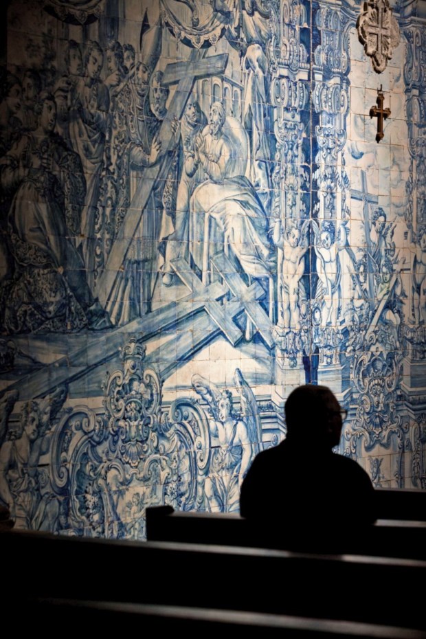 Portugal ainda dava os primeiros (e muitos bélicos) passos, quando o nosso primeiro rei instalou as cortes em Coimbra. Afonso I acabou por morrer na cidade, com a idade avançada de 74 anos, e aqui foi sepultado na Igreja Santa Cruz, que ele próprio mandou construir, de pedra alva, bem na Praça 8 de Maio, toda ela a brilhar com o tapete de pétreo polido. D. Manuel I, não reconhecendo no túmulo a grandeza exigida ao fundador da pátria, mandou fazer outro que colocou na nave central, contudo, rapidamente voltou à capela-mor onde se mantém até hoje. É difícil apreciar a beleza gótica do túmulo actualmente, não só porque as esculturas à laia de retábulo estão gastas e sujas mas porque o tráfego de visitantes é constante. É assim que nos vemos com a narração de um guia russo e respectivos turistas enquanto observamos o túmulo de D. Afonso Henriques e o do seu filho, Sancho I, no mesmo estilo embora mais modesto na decoração, lado oposto da capela. Ultrapassamos na nave central grupos de turistas que são alheios aos crentes que se recolhem nas últimas filas da igreja.