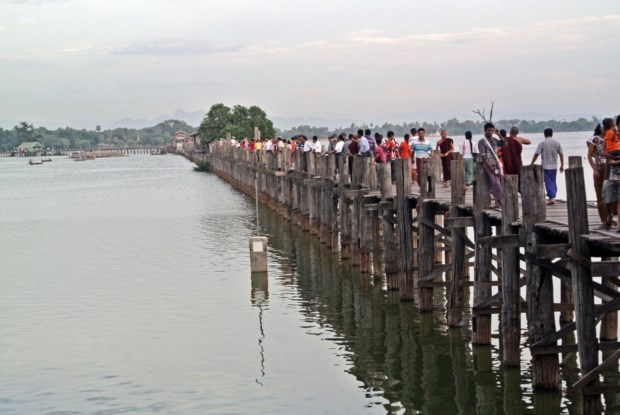 A viagem para Mandalay tem paragem em Amarapura (“Cidade da Imortalidade”) e no lago Taungthaman, onde se encontra a maior ponte de teca do mundo, a celebérrima U Bein — com 1,2 quilómetros, construída cerca de 1850, que hoje dá preocupações pelo estado de alguns dos 1086 pilares, que tiveram de ser reforçados. Recorde-se que a teca é nativa das florestas tropicais de monção. Amarapura teve o seu auge entre os anos de 1783 e 1857, momento em que Mandalay se tornou a capital da Birmânia. Ainda há reminiscências da actividade artesanal em algodão e seda. O Mosteiro Mahagandhayon atrai a curiosidade, quando os monges vêm, a meio da manhã, buscar os seus alimentos, formando uma impressionante fila de hábitos amarelo-alaranjados…