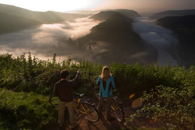 O vaivém fronteiriço é intenso e diariamente cerca de 15 mil franceses vão trabalhar à Alemanha para à noite regressarem a casa, do outro lado do rio. É que “esta região tem mais trabalho do que a francesa”, explica Susanne Renk, do Turismo do Saarland Central, “há muita indústria” (automóvel, aço e cerâmica). A este lado vêm também muitos franceses para fazer compras em Saarbrücken, “roupas, sapatos” e até para os restaurantes. “Nós vamos [a França] pelos queijos”, brinca — e haverá um número razoável de alemães a viver aí, “o custo das casas é menor”. Por isso, não surpreende que a própria língua se torne algo mestiça e, entre o alemão daqui, se ouçam palavras como “porte-monnaie”, “sofa”, “saldes” ou “trottoir” e que a própria gramática se alinhe como a francesa, sinal imediato de identificação no resto da Alemanha. “Nós, por exemplo, dizemos ‘tenho fome’, quando em alemão seria ‘sou fome’”. O objectivo é, aliás, mais ambicioso: pretende-se que a região seja totalmente bilingue em 2043, com o francês a ser ensinado desde o ensino primário e a sua fluência obrigatória para empregos no sector público.