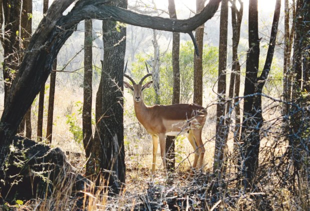 Chegamos às portas do Kruger com esta ideia, esta representação, esta imagem, que é também de exaltação da diversidade das formas de vida. E o tempo é este, o do Verão austral, dos excessos, das intemperanças, das grandes águas vertidas sobre a terra. Dos sentidos despertados de súbito a meio da noite por um aguaceiro torrencial. E a arca onde está? Está lá fora, a imensa arca com os inumeráveis bichos da Criação. Mas o sonho é surrealista, chove dentro da arca, o tempo parado ou às avessas, Noé conta ainda os casais, dois ou sete de cada espécie... e não tarda que o sonho seja menos do que um farrapo de nuvem desfeito pela madrugadora luz africana. Num instante somos parte de um amanhecer límpido, com um sol alaranjado a crescer depressa no horizonte e a bicharada a acordar também para o dia.